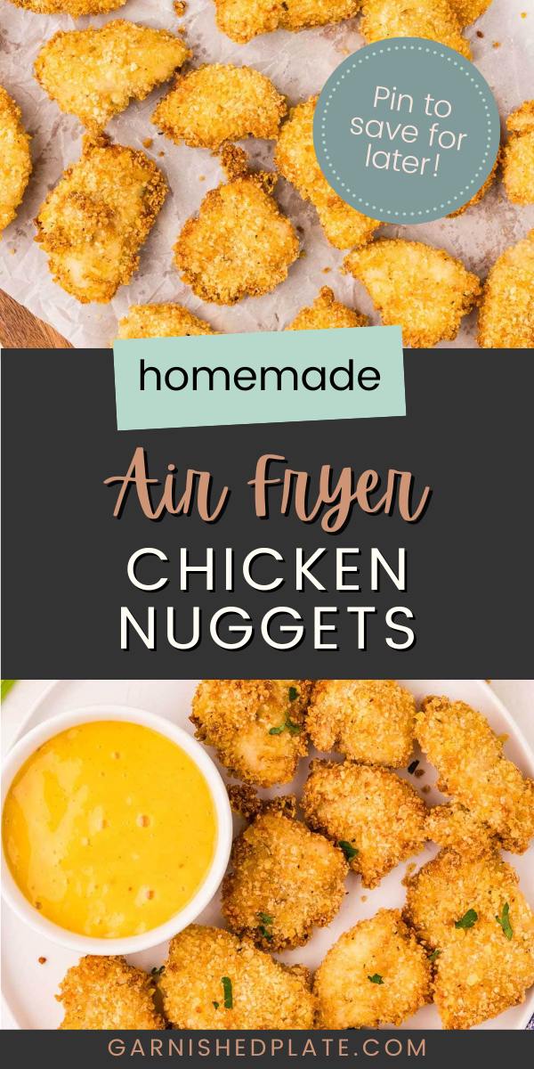 - Air fryer chicken nuggets are homemade with simple, real ingredients. There’s no mystery meat or a paragraph of extra ingredients like you’ll find with frozen nuggets.