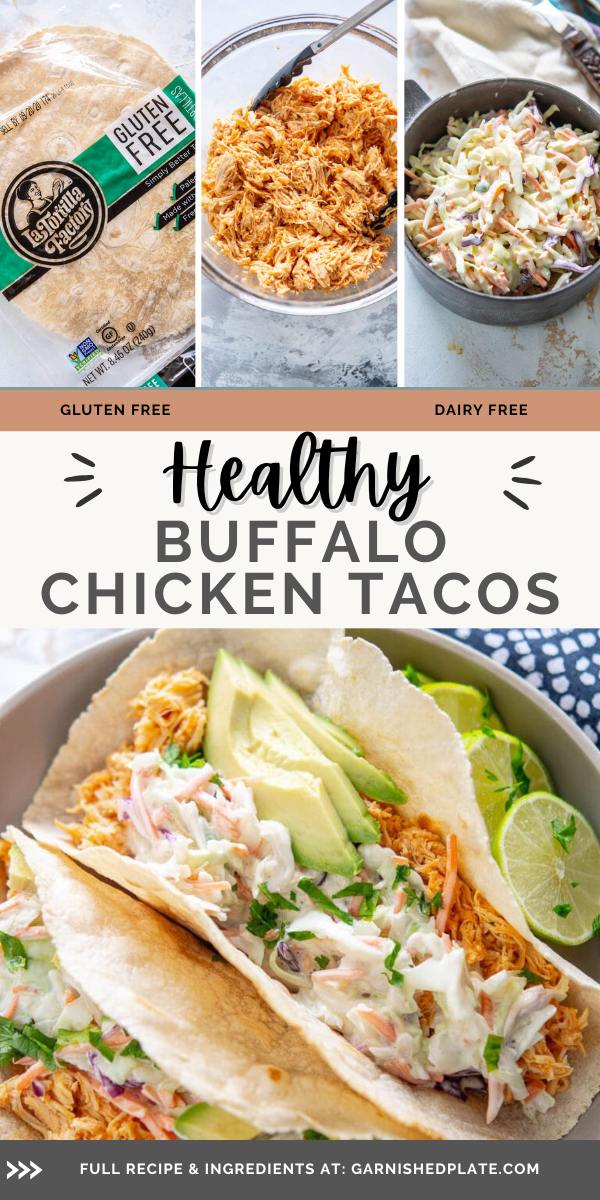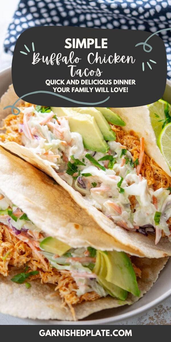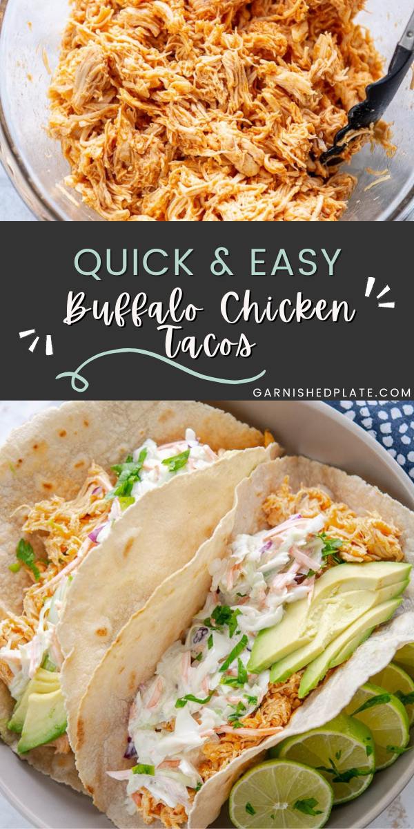 If someone you’re serving doesn’t care for coleslaw, you could also serve Buffalo Chicken Tacos with lettuce, tomato and blue cheese (or ranch) dressing.