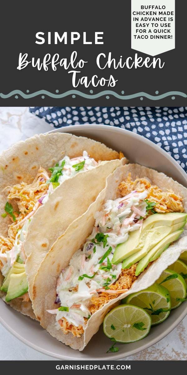 Make Buffalo Chicken in advance to save time. On the day you want to serve it, assemble it into buffalo chicken tacos for a delicious (and quick!) dinner that your family will love.