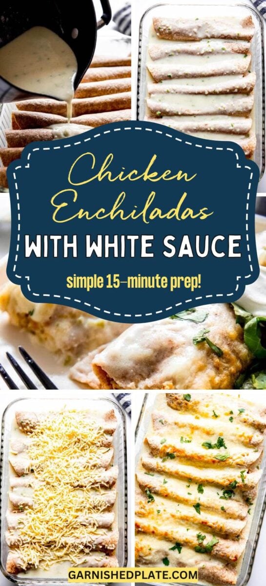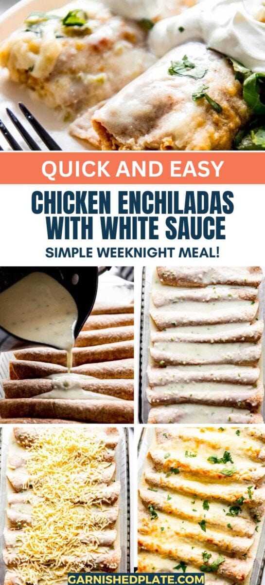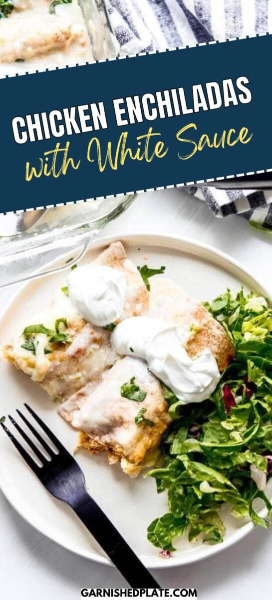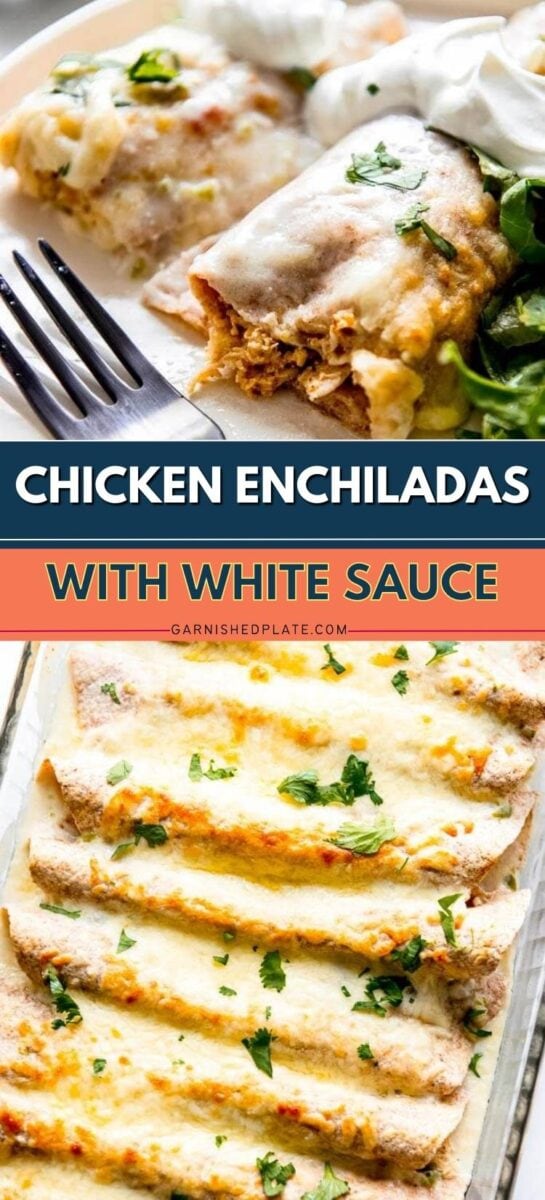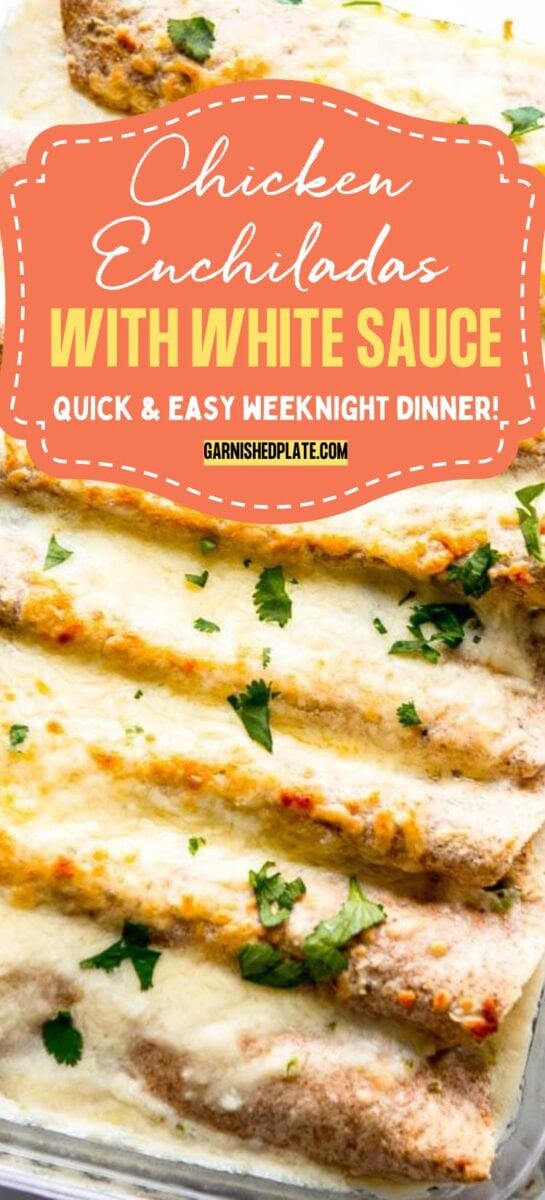 These easy chicken enchiladas with white sauce use leftover shredded chicken and a simple homemade white sauce for a quick and easy weeknight dinner your family will love.