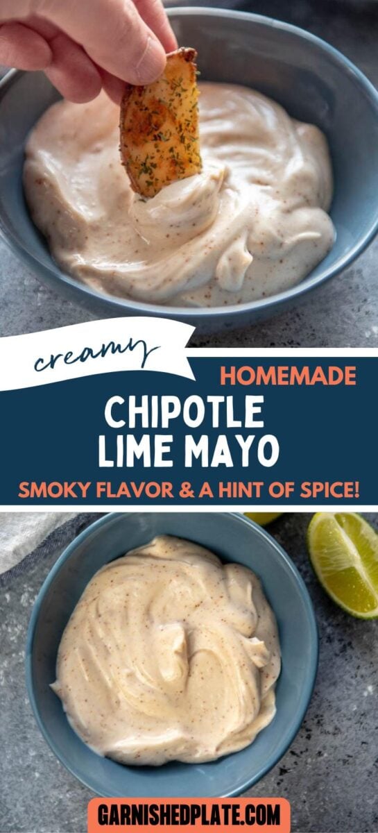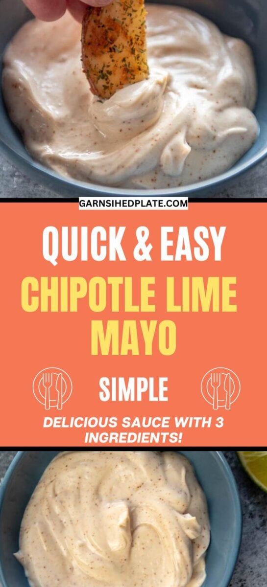 If you’re team mayo and love it as a garnish and dip then you’re sure to love this Chipotle Lime Mayo! Whisk it up with just 3 ingredients and serve with fries or burgers for a delicious sauce!