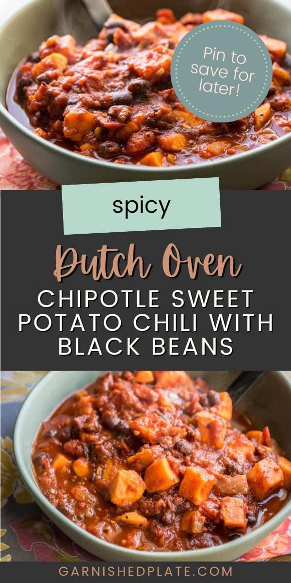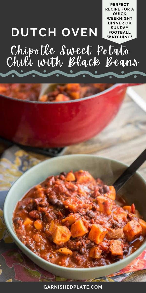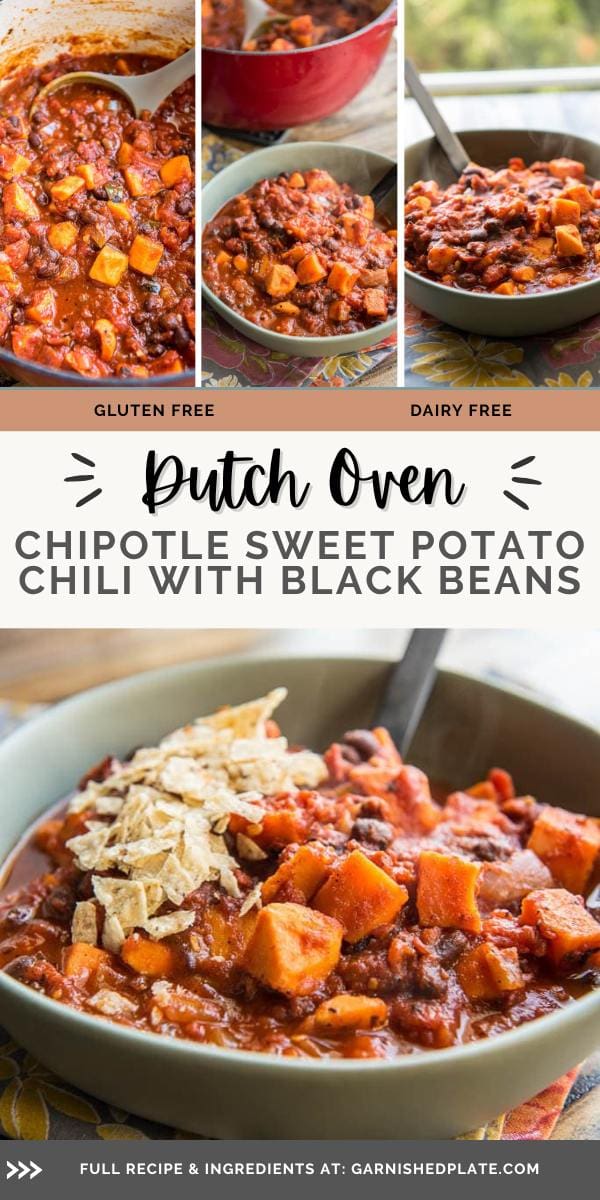 Chipotle Sweet Potato Chili with Black Beans is perfect for a quick weeknight dinner and is dairy-free, gluten-free and vegan! Spicy, delicious and filling!