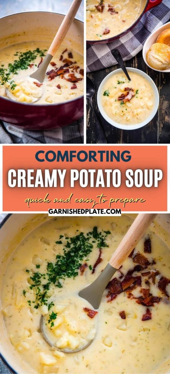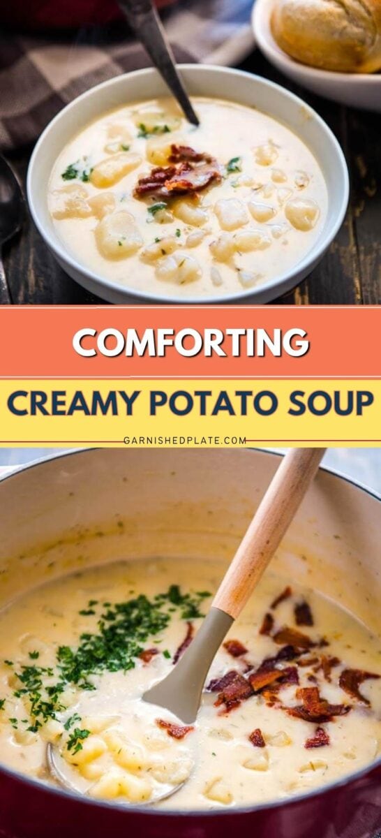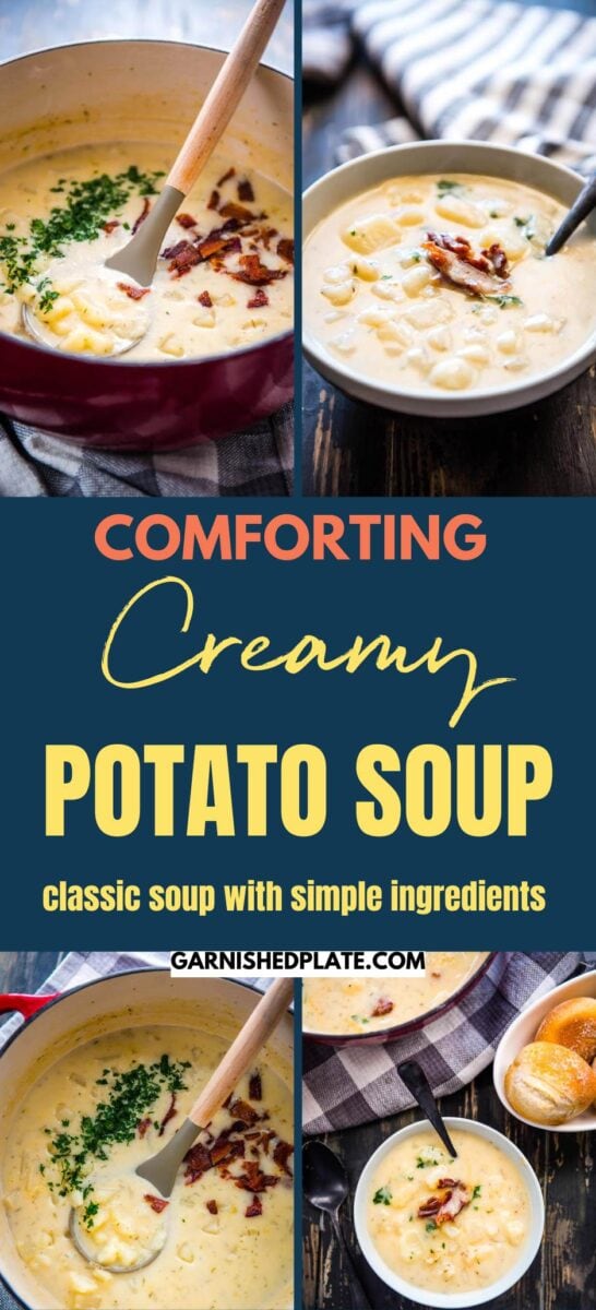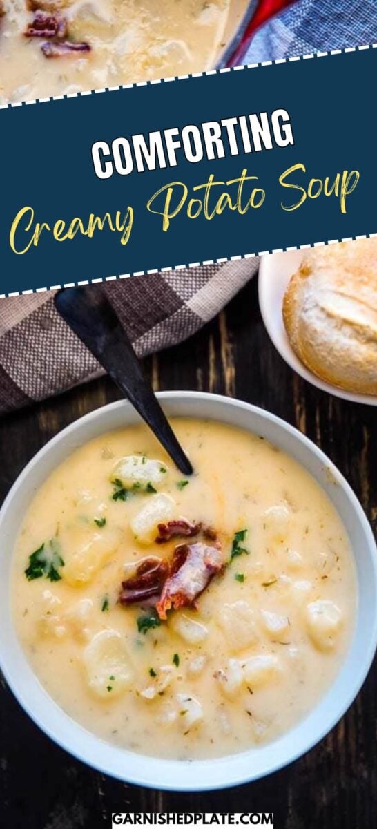 A simple comforting meal that is quick and easy to prepare and perfect for any day of the week. This Comforting Creamy Potato Soup is a favorite go to for a warm and cozy meal.
