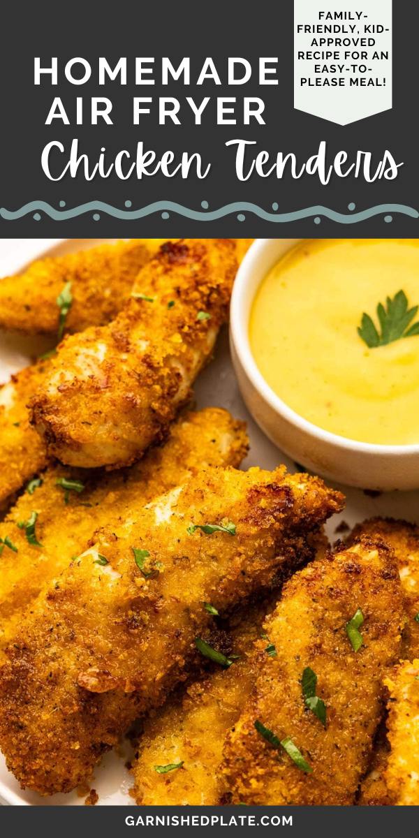 Homemade Air Fryer Chicken Tenders are as family-friendly as it gets! With no egg or flour, they have a crunchy, light breading that still turns out perfectly golden. Serve air fryer chicken tenders with your favorite dipping sauces and homestyle sides!