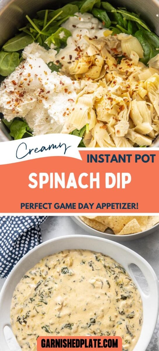 Instant Pot Spinach Dip uses simple and wholesome ingredients, including fresh spinach and artichoke hearts, to create a dip that’s perfect for a cozy day at home or watching the big game.