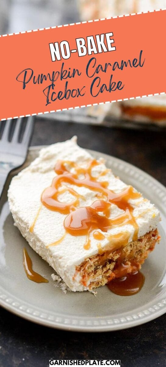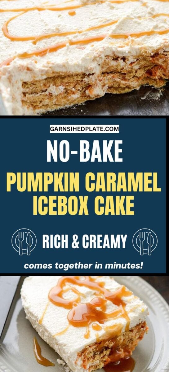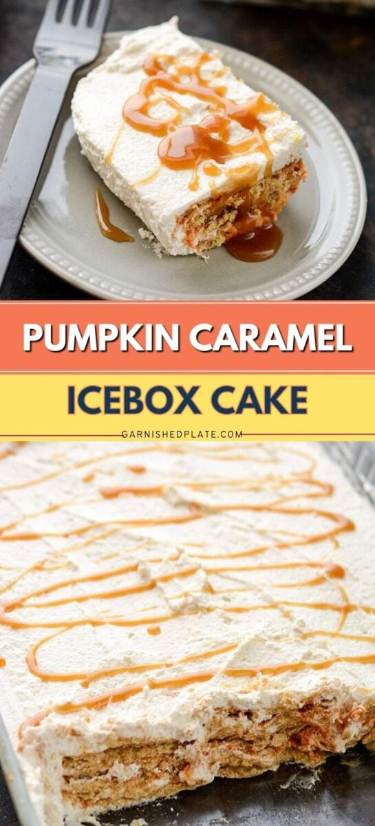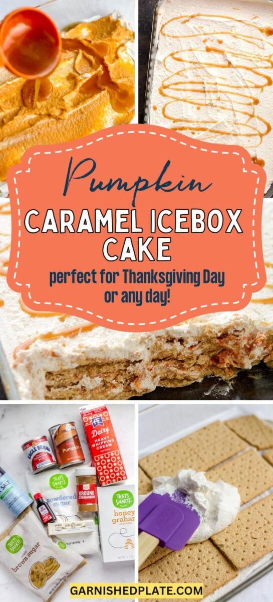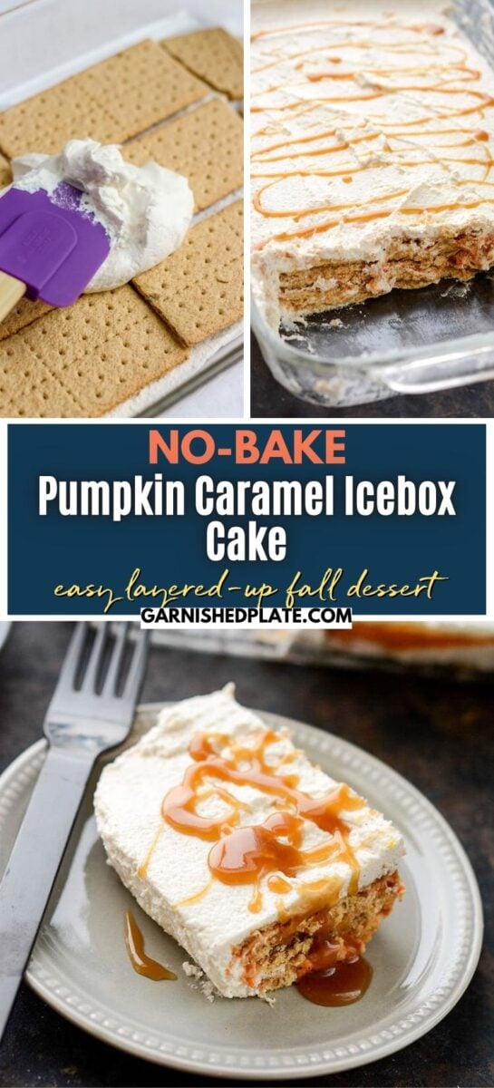This easy no-bake fall dessert is perfect for Thanksgiving or any day you crave pumpkin! Delicious layers of graham crackers, caramel, pumpkin and whipped cream make this simple icebox cake a dessert that will be requested every year!
