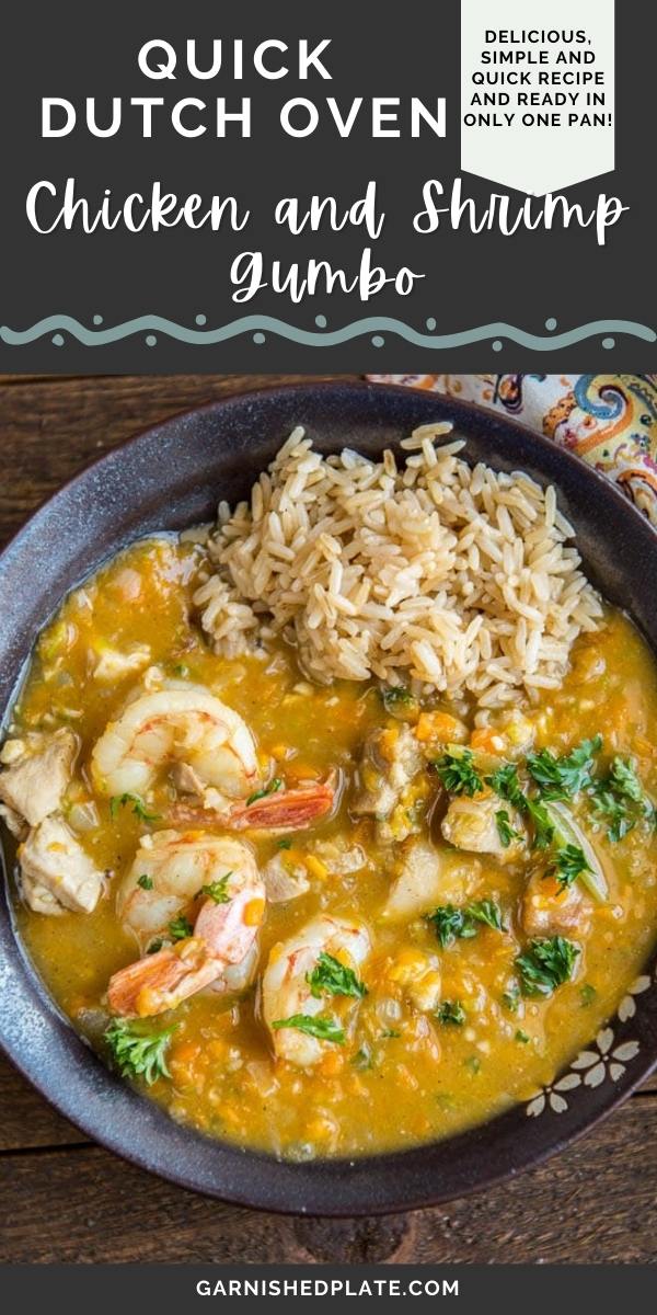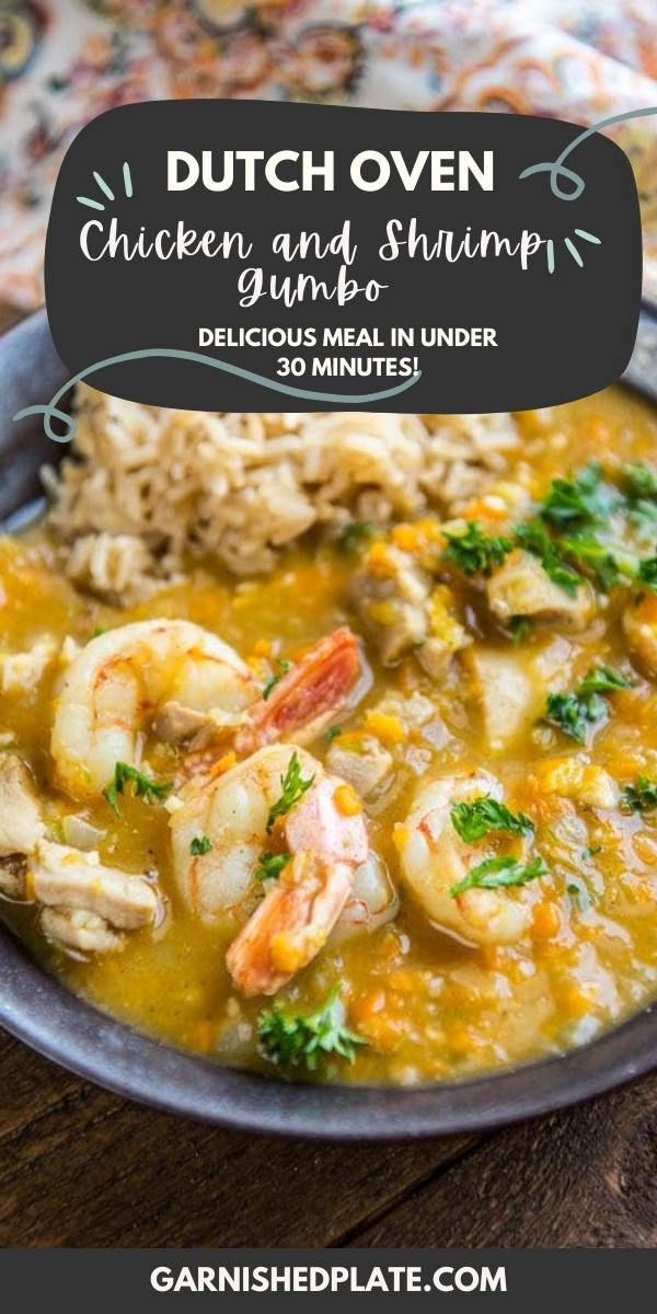 Delicious and simple to make dinners are the best! This Quick Chicken and Shrimp Gumbo comes together in about 30 minutes and is so tasty!