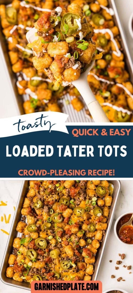 - Sprinkle the tots with green onions, jalapeños, and spoonfuls of salsa or pico.