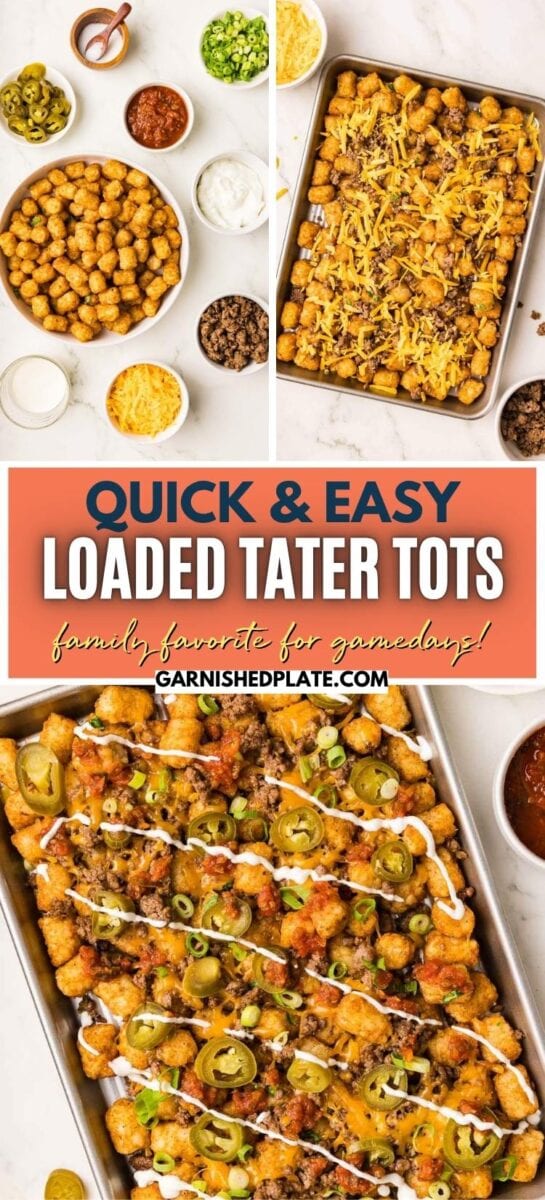 - Loaded tots are easy to assemble with basically anything you are craving! The warmed tots serve as the base, and you can customize the layers with your favorite additions.
