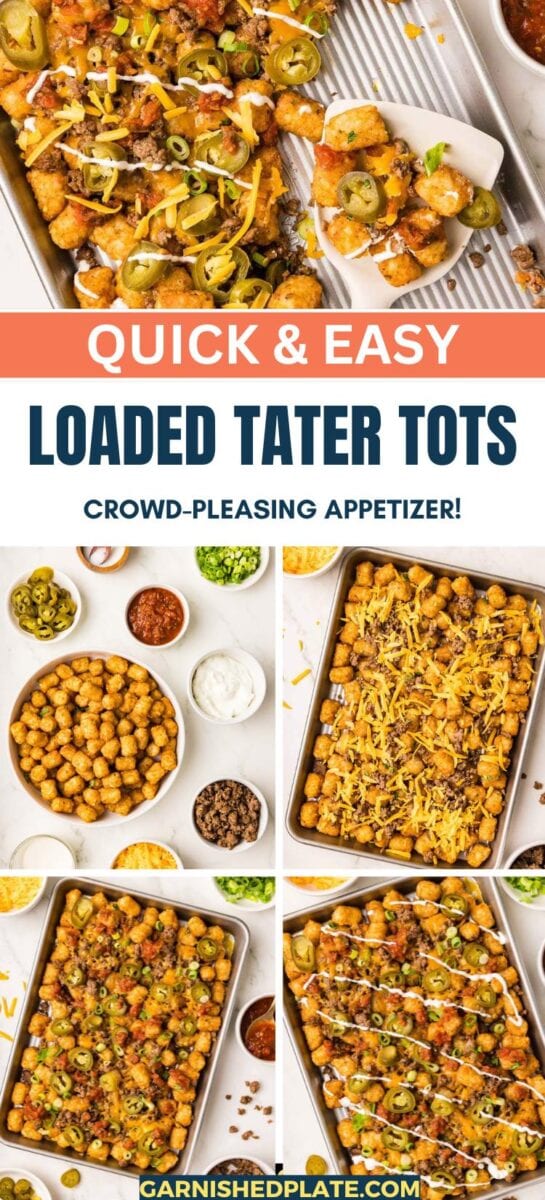 - It’s simple to make a crowd-pleasing batch (or two!) of loaded tots using a sheet pan and the oven. Simply layer the warmed ingredients, then place the pan in the oven for a few minutes to melt the cheese or crisp everything under the broiler.