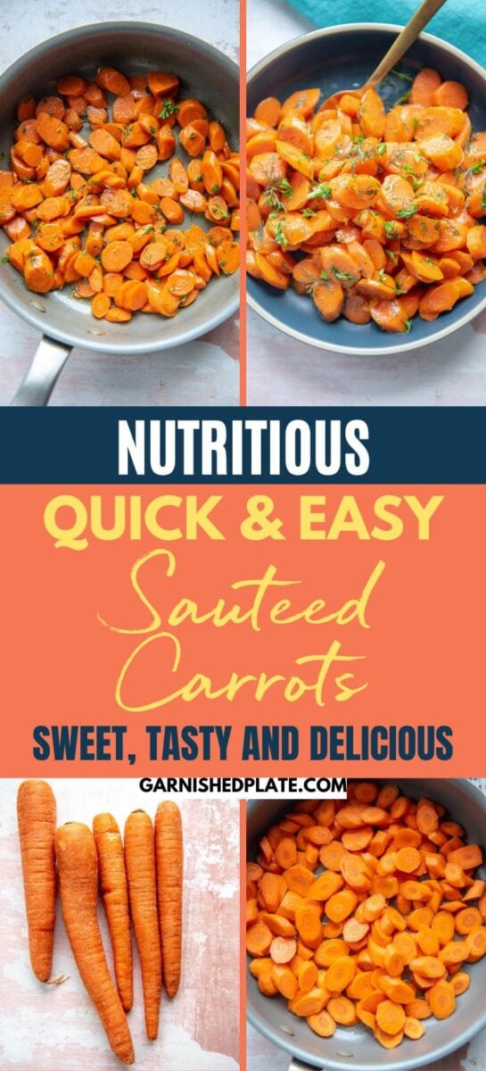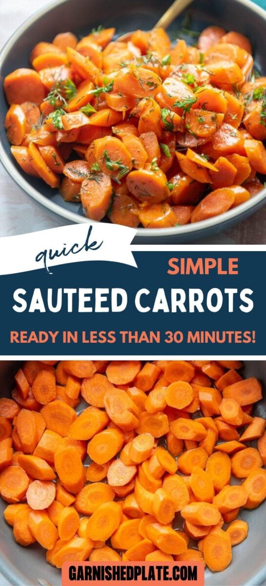 You’ll want to use a skillet with a lid, so that you can add some water and steam/soften the carrots a bit first. This will help them cook up tender, and be quick to make.